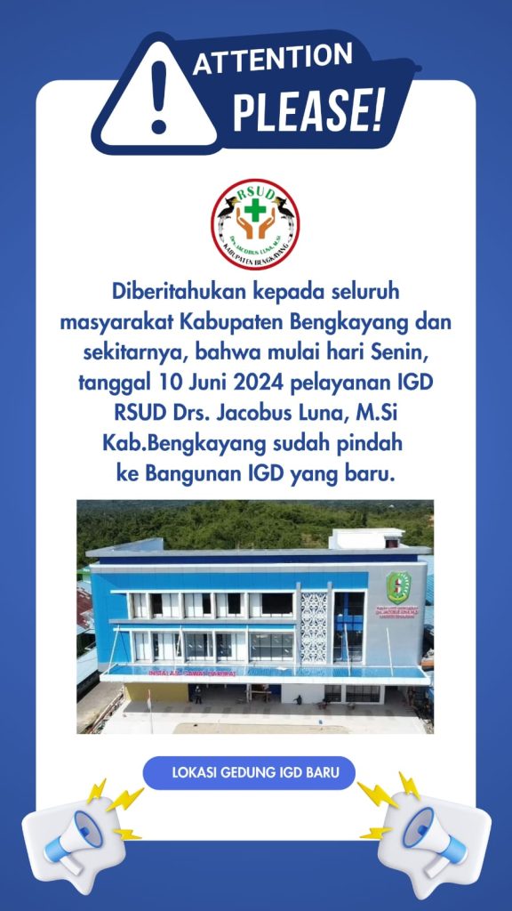 Kabupaten Bengkayang, 10 Juni 2024 – Masyarakat Kabupaten Bengkayang dan sekitarnya diminta untuk memperhatikan perubahan penting terkait pelayanan kesehatan. Mulai hari Senin, tanggal 10 Juni 2024, pelayanan Instalasi Gawat Darurat (IGD) Rumah Sakit Umum Daerah (RSUD) Drs. Jacobus Luna, M.Si Kabupaten Bengkayang telah resmi pindah ke bangunan baru.